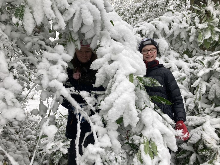 Last Monday the railroad tracks of our life upended in the most beautiful way. We awoke to powdery soft snow blanketing everything in brilliant white. We declared it a snow day and after a hot chocolate breakfast spent most of the day outside playing, laughing, sliding and marvelling, breathing out and soaking in the unexpected disruption of our routine existence.