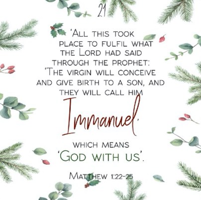 “All this took place to fulfil what the Lord had said through the prophet: ‘The virgin will conceive and give birth to a son, and they will call him Immanuel’ (which means ‘God with us’).” Matthew 1:22-25