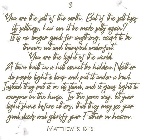 God’s original ‘blessed to be a blessing’ promise and calling for Abraham in Genesis chapter twelve is reimagined by Jesus with His twin declarations of ‘You are the Salt of the Earth’ and ‘You are the light of the world’.