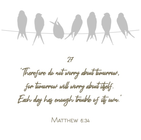 “Therefore do not worry about tomorrow, for tomorrow will worry about itself. Each day has enough trouble of its own.” (Matthew 6:34)