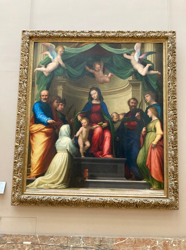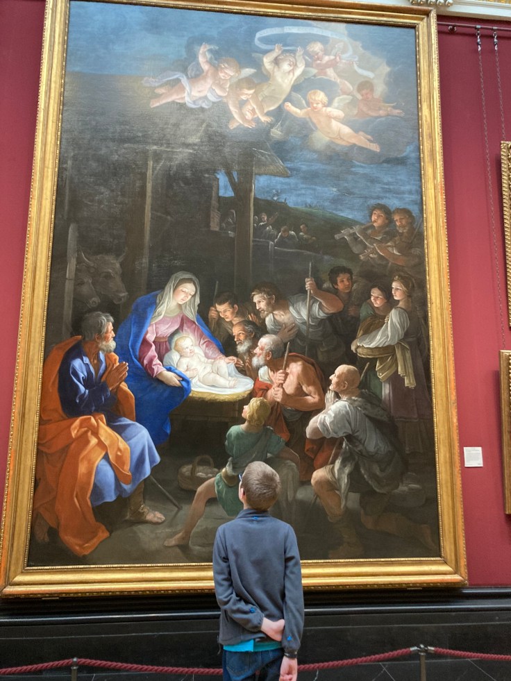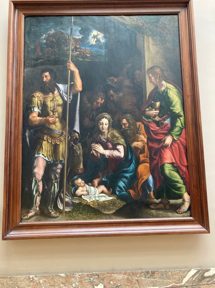 Some of these paintings in the Louvre recreate Bethlehem’s stable with imposing Romanesque pillars. Their skilful strokes capture Mary and her entourage in aristocratic style draped in colourful silks and gentle smiles. They hue Baby Jesus’ well fed cheeks in blushing pinks and His eyes in starry blues.