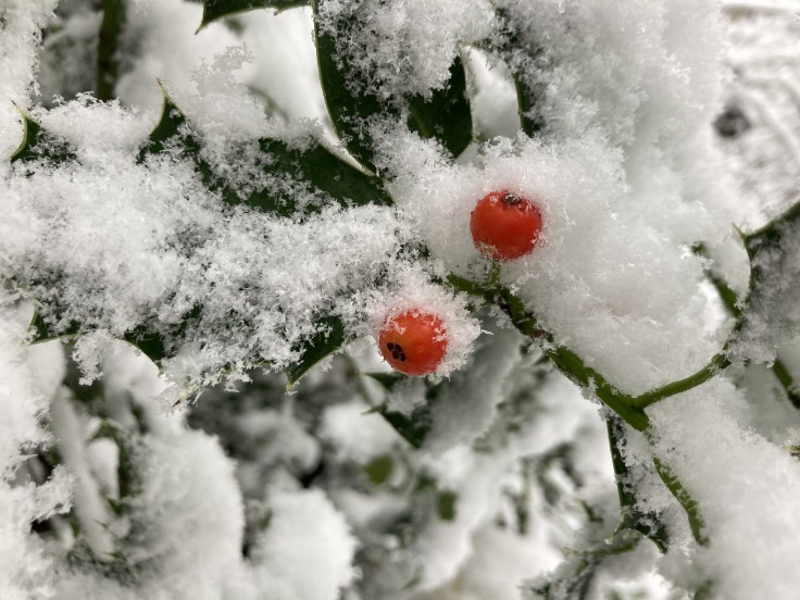 The puppy sat whining at the fence unable to follow me, as I slipped between the fence wires into the wooded corner of our field. Resigning herself, she sat moping, nose through the fence, waiting. I was on a mission. When the snow had fallen last year I’d spied red holly berries peaking out behind the powdery white and I was returning now, after it melted, to retrieve them.