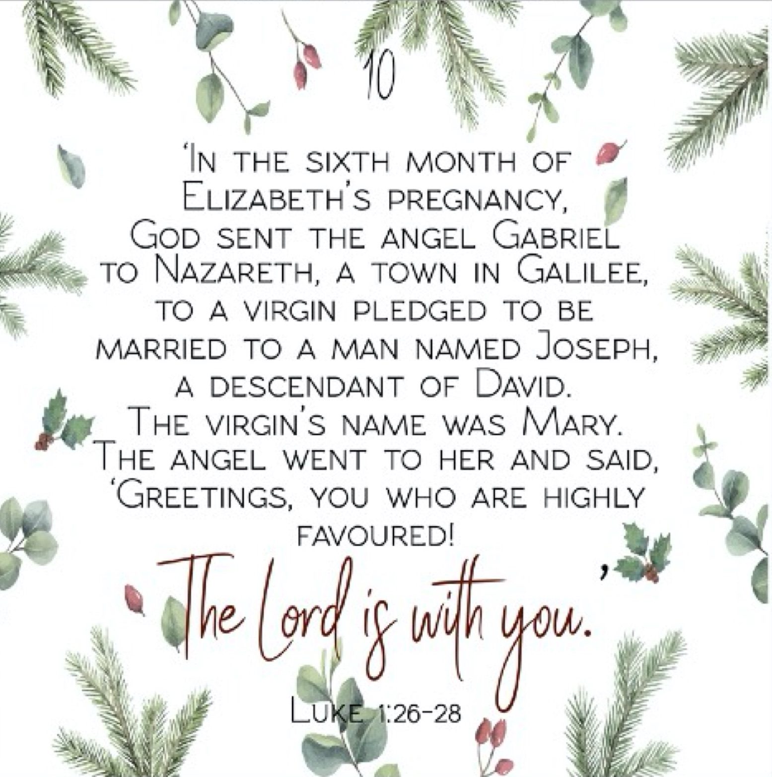 ‘The virgin’s name was Mary. The angel went to her and said, ‘Greetings, you who are highly favoured! The Lord is with you.’ Luke 1:27b-28