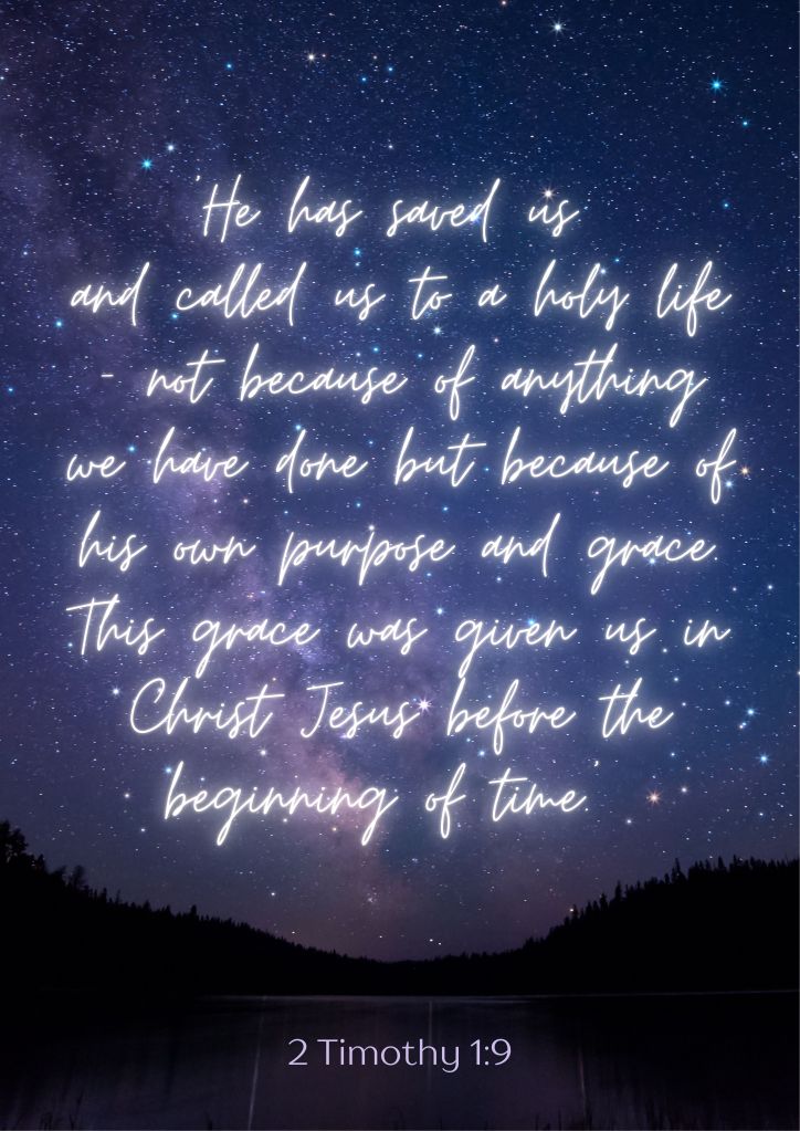 ‘He has saved us and called us to a holy life—not because of anything we have done but because of his own purpose and grace. This grace was given us in Christ Jesus before the beginning of time.’